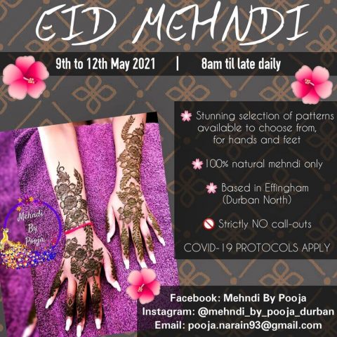 Professional and experienced in the art of mehndi (henna), I offer both bridal and non-bridal mehndi services for every occasion, within Durban and closely surrounding areas